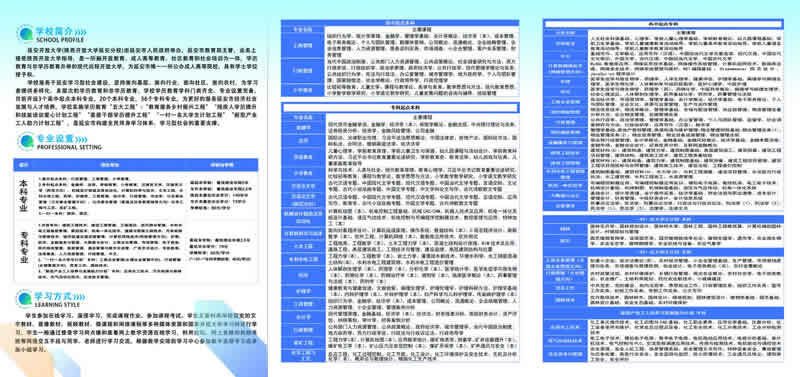 学校设置高起专、高起本、专升本、研究生(MBA)等多种学历层次,开设管理、经济、教育、理工、建筑、石油、化工、医药、农林等类60多个专业。